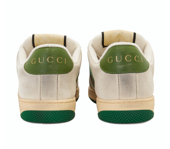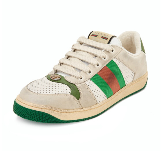 グッチGUCCIメンズScreenerシリーズホワイト/ベージュは古い効果の縞模様のウェビング運動靴546163 0YI20 9582 8を作って彼氏に彼女を送ります