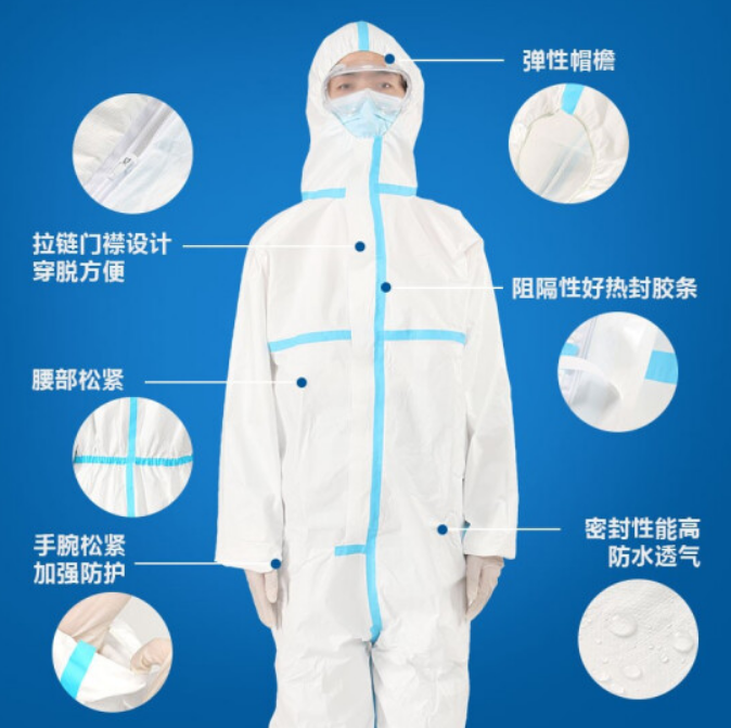 新型小型防護使い捨て防護服医療用防疫服キャップ付き隔離服青色縞連体全身防護服平均サイズ
