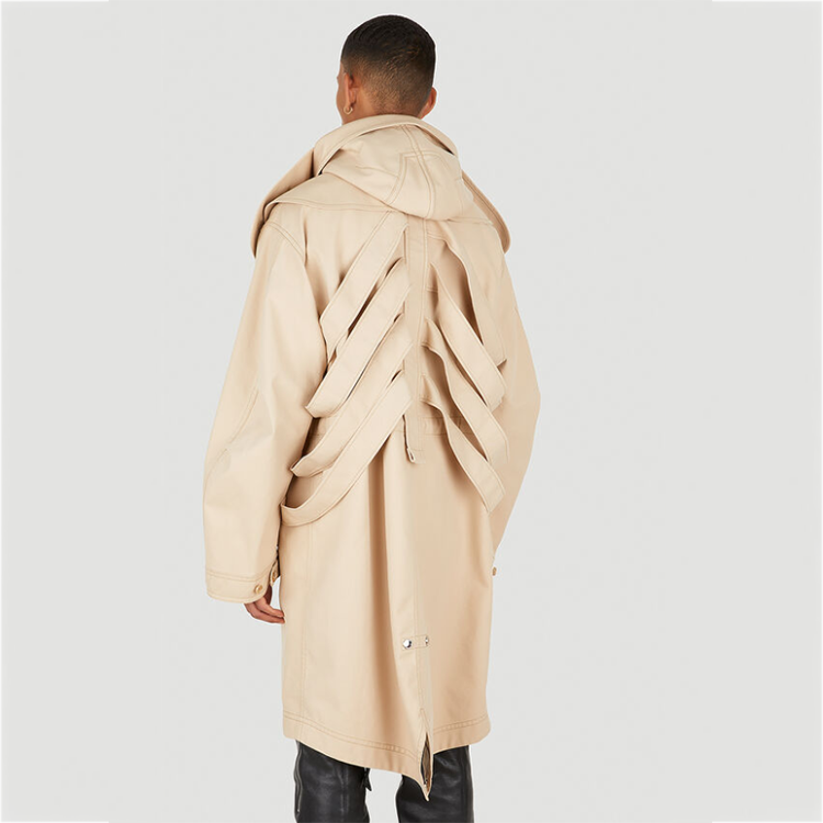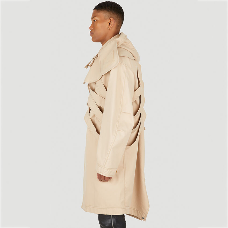 OEM ribcage straps adjustable collar men's modest trench coat custom haute welt pockets windbreak hooded jacket for men